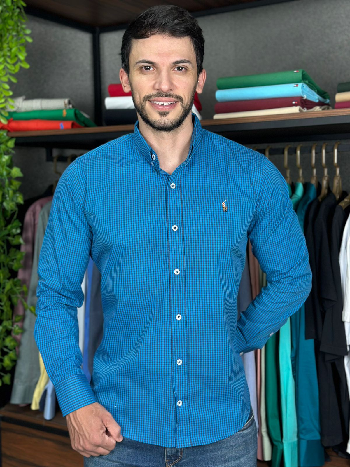 Camisa social Ralph Lauren masculina manga longa algodão fio 60.1