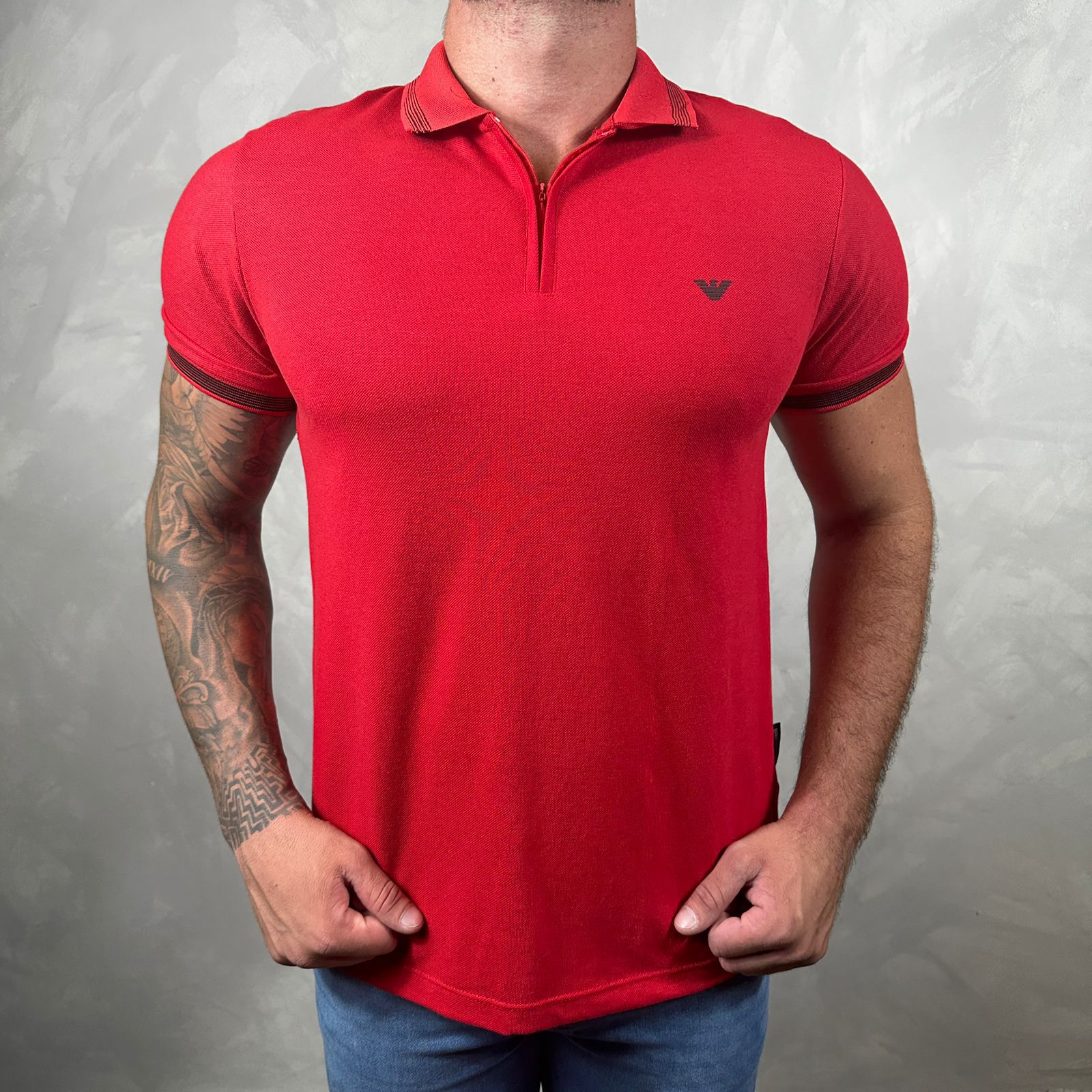 Polo Armani Masculina em Piquet com Zíper Regular Fit